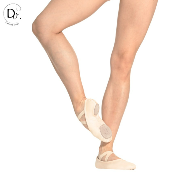 Zapatilla de ballet de suela partida de tela con goma elástica para un mejor ajuste al pie. Adecuada para todos los niveles.