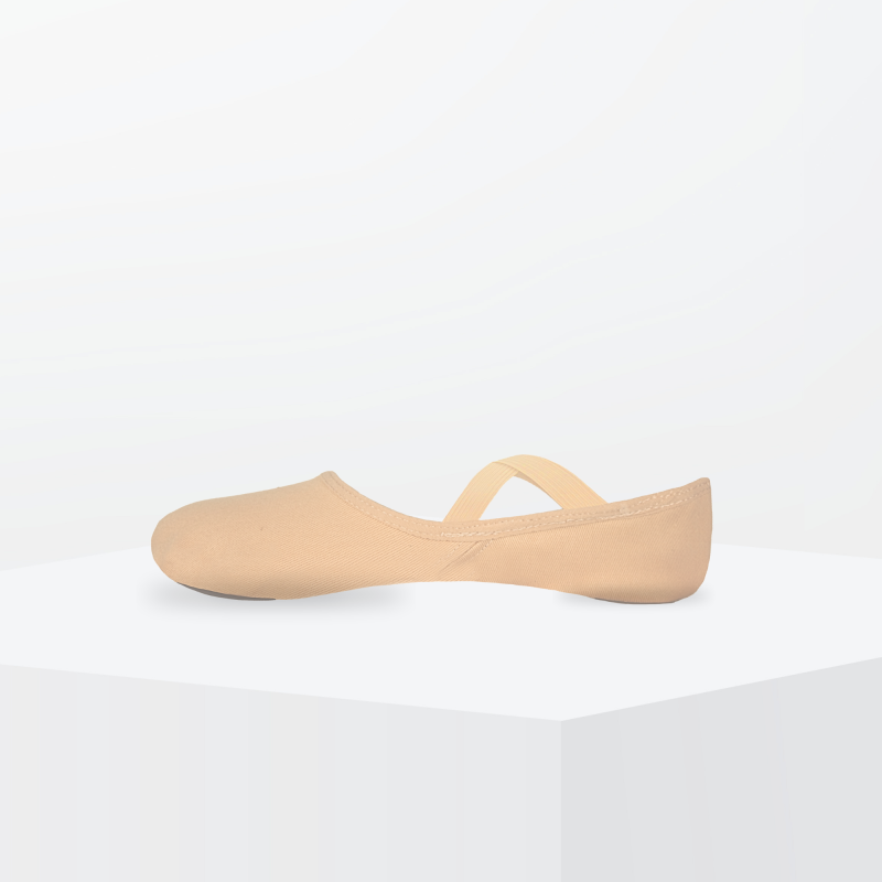 Zapatilla de media punta en tela, con refuerzo en talón y puntera.